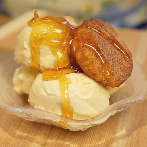 One Cheese Enchilada, Mexican Rice, and a Bean Burrito topped with Cheese Sauce.